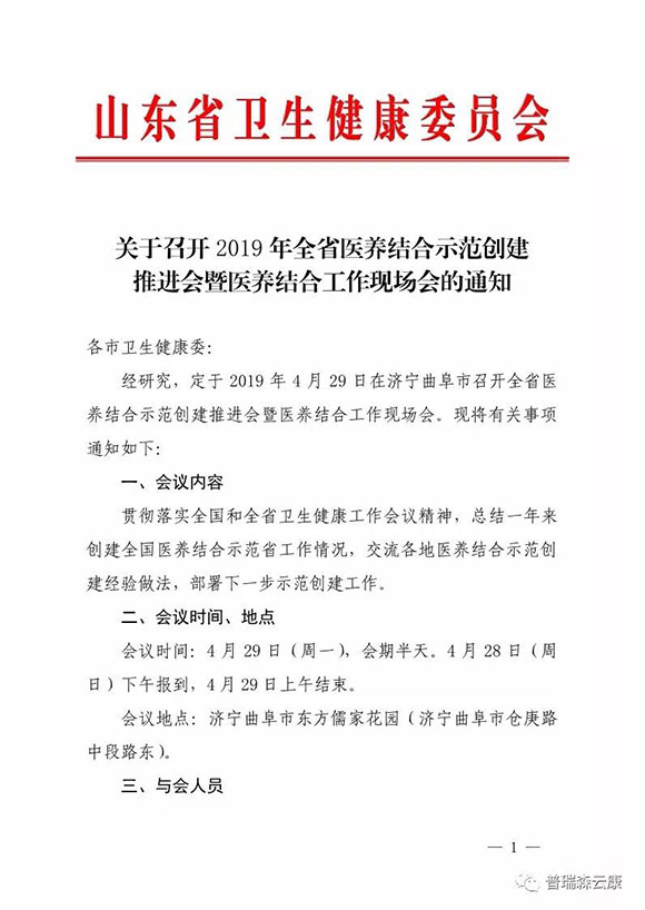 2019年全省醫(yī)養(yǎng)結合示范創(chuàng)建推進會暨醫(yī)養(yǎng)結合工作現場會2019年4月29日上午8時左右,山東普瑞森醫(yī)療設備股份有限公司各部門負責人在王總的帶領下參加在曲阜市舉行的“2019年全省醫(yī)養(yǎng)結合示范創(chuàng)建推進會暨醫(yī)養(yǎng)結合工作現場會”,并陪同省衛(wèi)健委領導參觀小雪社區(qū)衛(wèi)生服務中心醫(yī)養(yǎng)結合示范點。