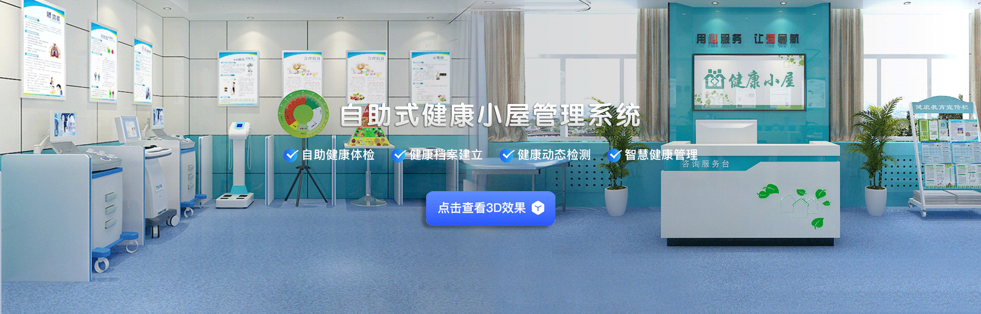 健康小屋系統(tǒng)是指通過軟件技術(shù)、物聯(lián)網(wǎng)、通訊技術(shù),把多種專業(yè)級醫(yī)療健康設備整合在一個溫馨、舒適的環(huán)境下,使體檢者可以自主、輕松、愉快地選擇體檢項目,并實現(xiàn)一系列生理參數(shù)的檢測、自動評估、健康指導、健康宣教等功能。重在培養(yǎng)自我健康管理意識,樹立健康生活習慣。
