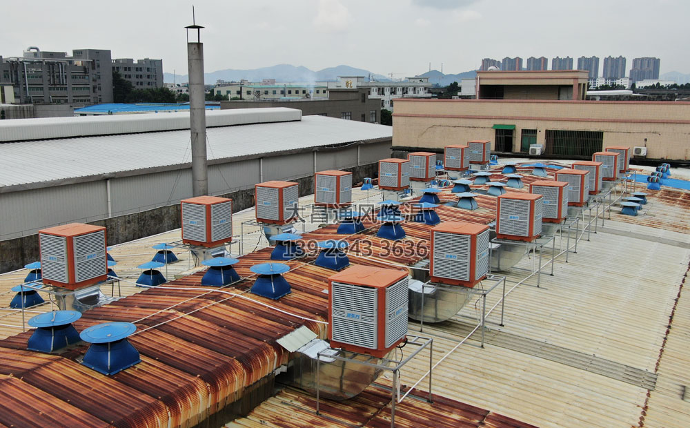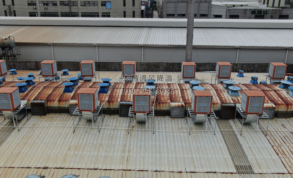 "潤(rùn)東方"環(huán)保空調(diào),安裝費(fèi)用低,運(yùn)行費(fèi)用少,平均每百平方米車(chē)間每小時(shí)降溫費(fèi)用僅需1度電,特別適合在生產(chǎn)型企業(yè)的車(chē)間里使用,下圖為東莞某大型鋼結(jié)構(gòu)車(chē)間安裝潤(rùn)東方環(huán)??照{(diào)的工程圖片: